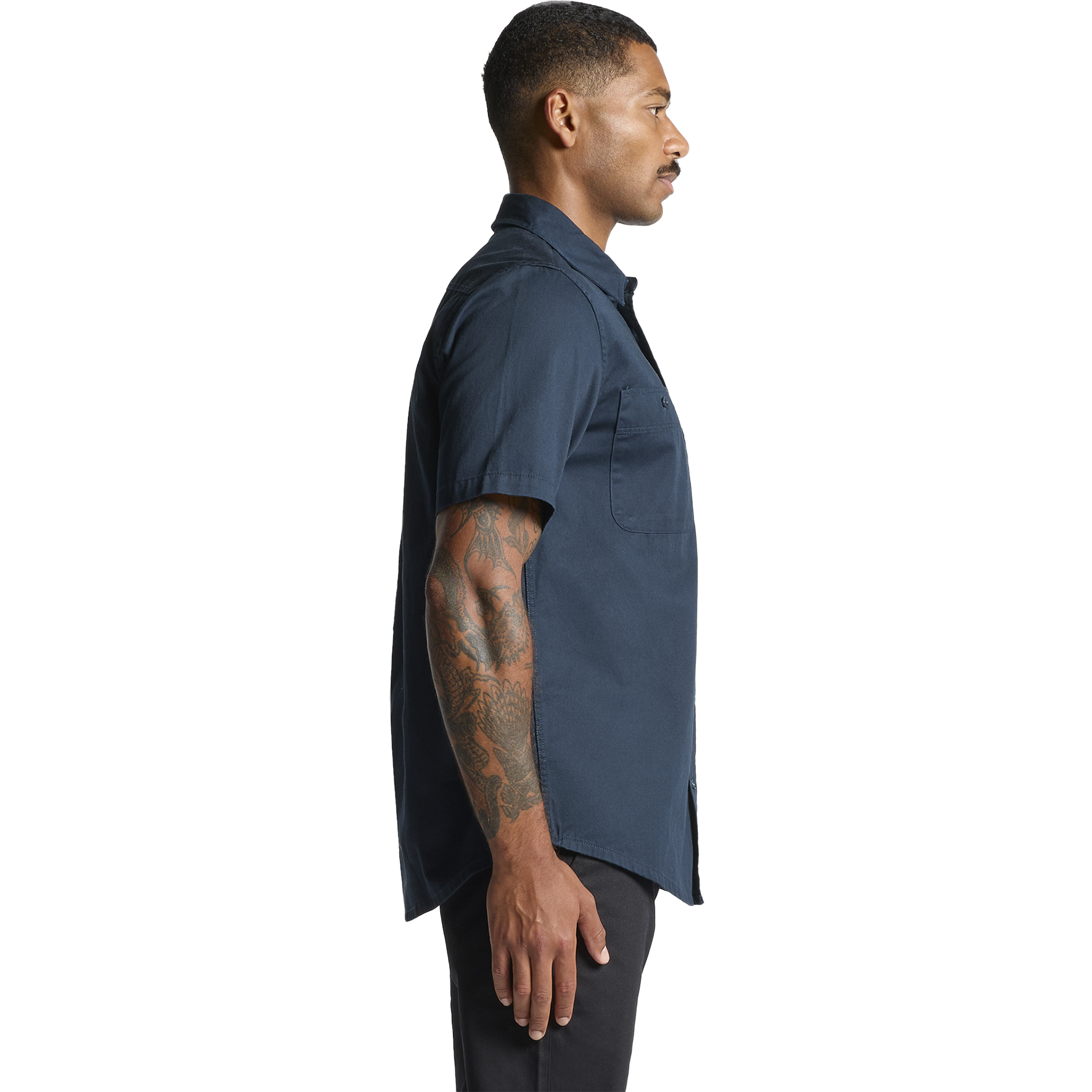 Introducing the Work Shirt: where durability meets style! With a regular fit and heavyweight 240 GSM cotton drill fabric, this shirt is built to last. Featuring short sleeves, two chest pockets with a pen channel, tonal buttons, side seams, and a back yoke with a hang loop. Plus, it's preshrunk to keep its fit perfect. Stay sharp and ready for anything! 💪👔